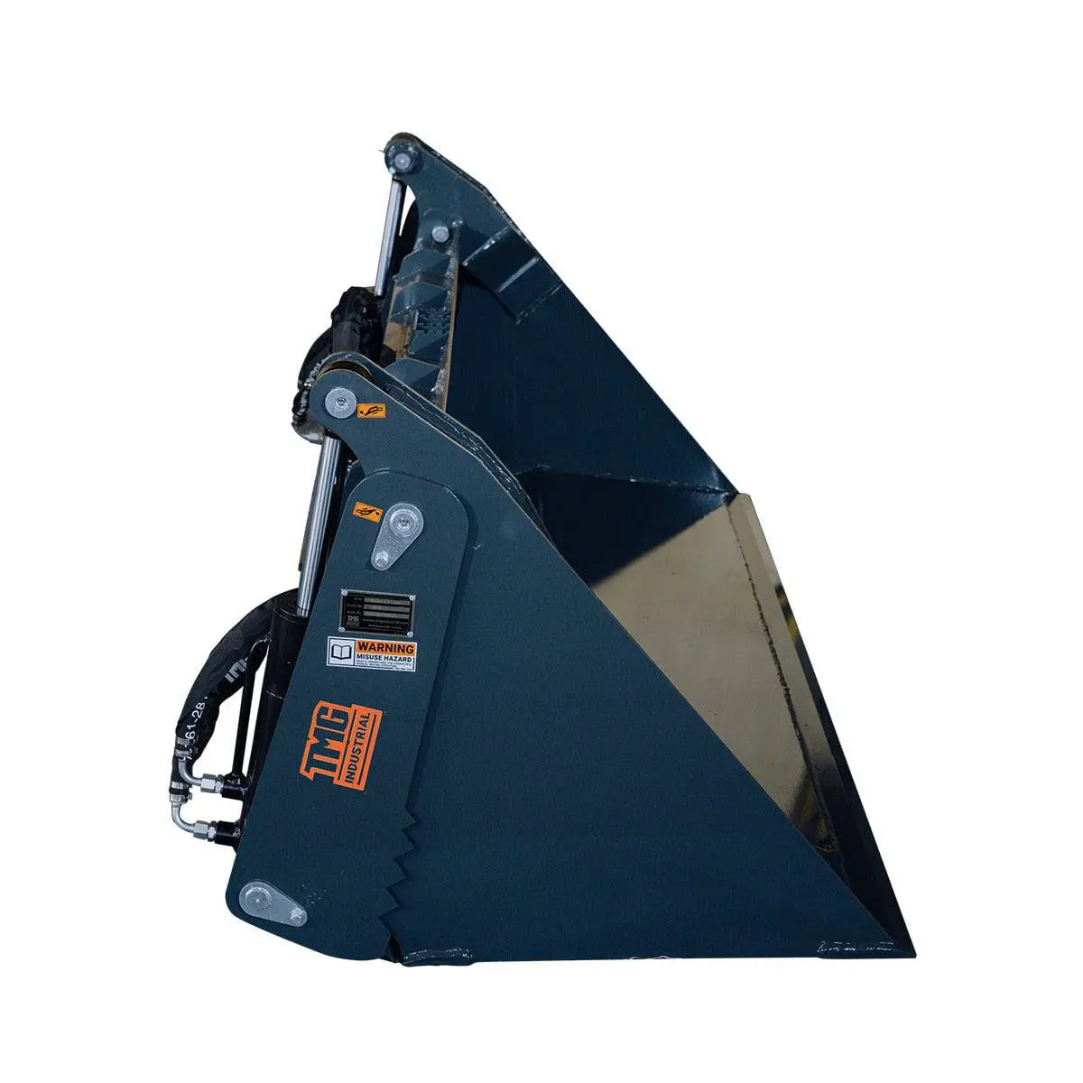 The TMG-SBF72 Skid Steer 4-in-1 Bucket is crafted for universal skid steer connections. Engineered with a tough NM400 steel blade, it offers a spacious 0.35 M³ (12-¼ cu-ft) bucket capacity to handle various tasks with ease.