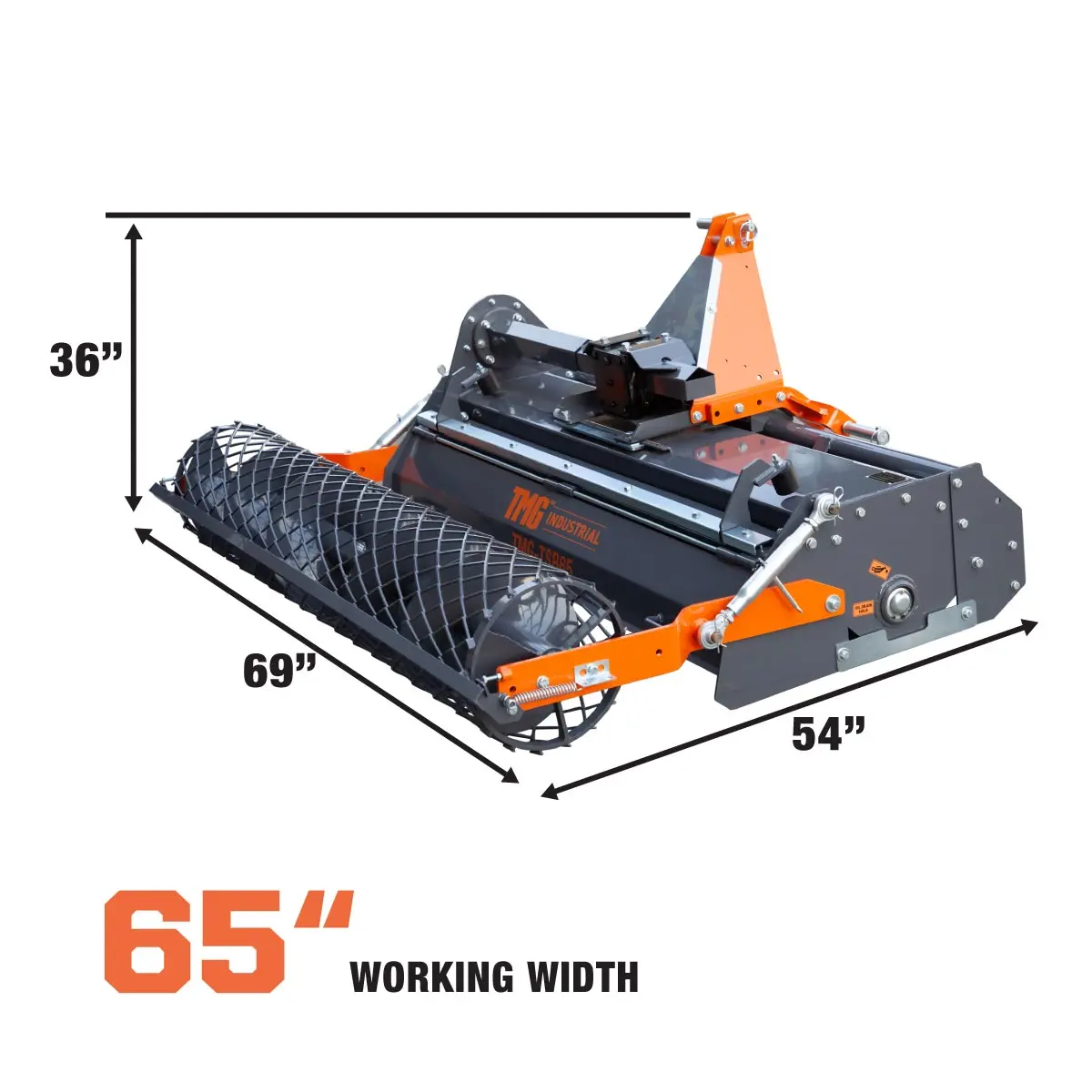 The TMG-TSB65 Stone Burier & Rotary Tiller has been designed to efficiently prepare your seed bed, nursery, sod farm, garden plot or other landscaping area with a clean, fine-soiled finish. Capable of burying stones and other debris up to 6" deep, leaving fresh, organic earth layered on top for prime seeding grounds and superior growing potential.